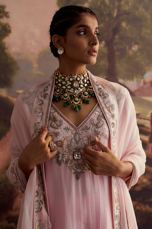 PASTEL PINK EMBROIDERED KURTA SET WITH DUPATTA