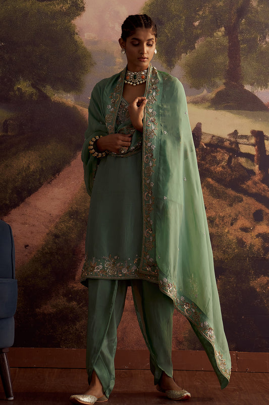 SAGE GREEN EMBROIDERED KURTA SET WITH DUPATTA