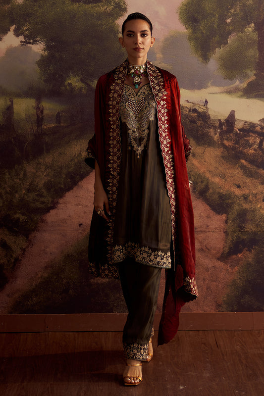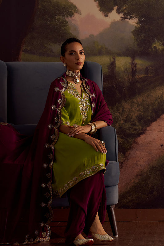 SUFIANA NEEM KURTA SET WITH DUPATTA