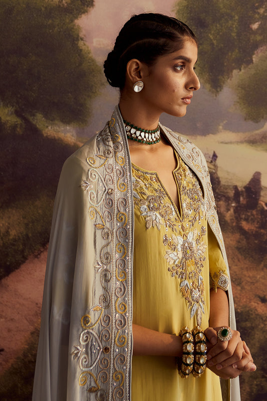PASTEL YELLOW EMBROIDERED KURTA SET