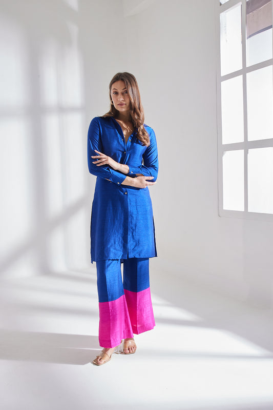 RUBAL WADHWA X PINK-BLUE BLOCK KURTA SET