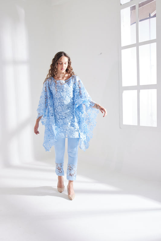 HAZE BLUE SCHIFFLI KAFTAN SET