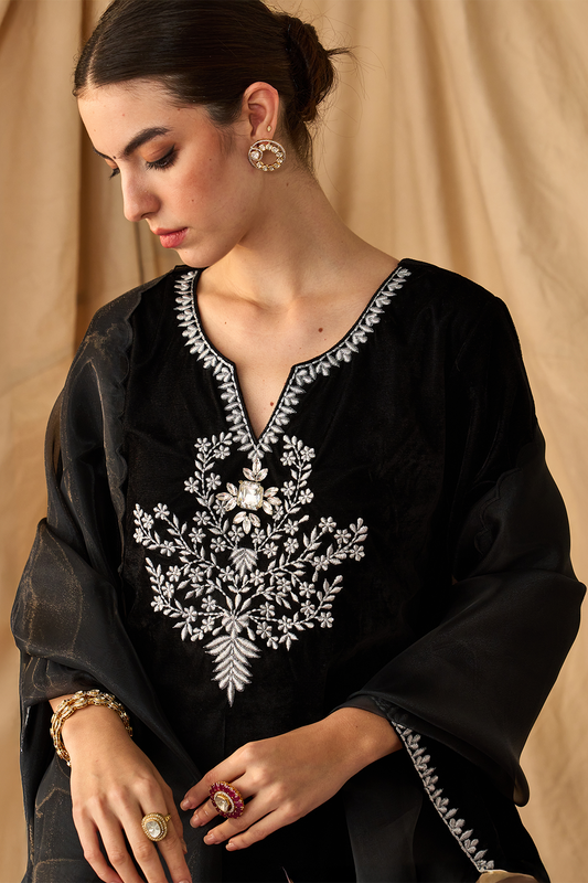 INARA ZARI-DAMAN KURTA SET -BLACK