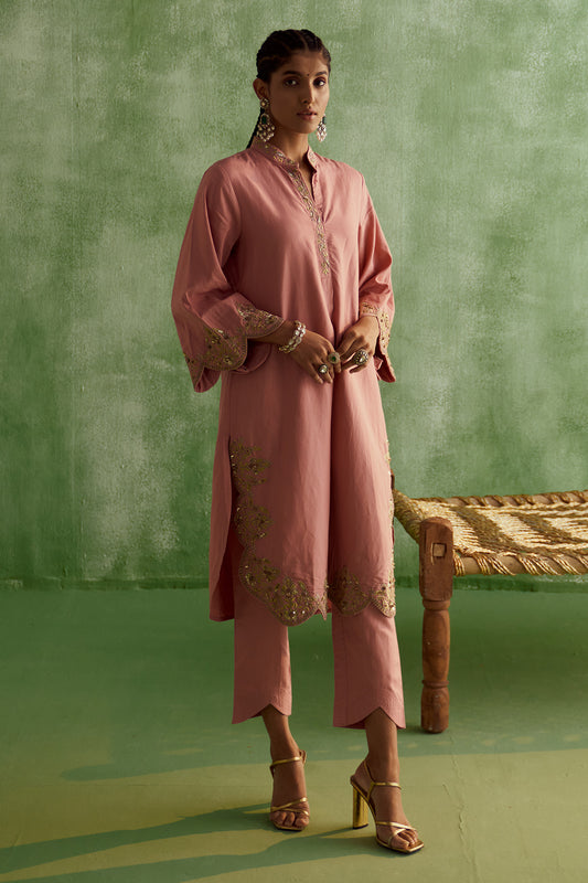 PASTEL PINK EMBROIDERED KURTA SET