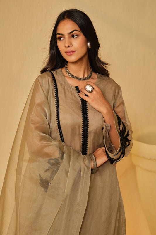 SUFIANA HAZE BEIGE KURTA SET WITH DUPATTA