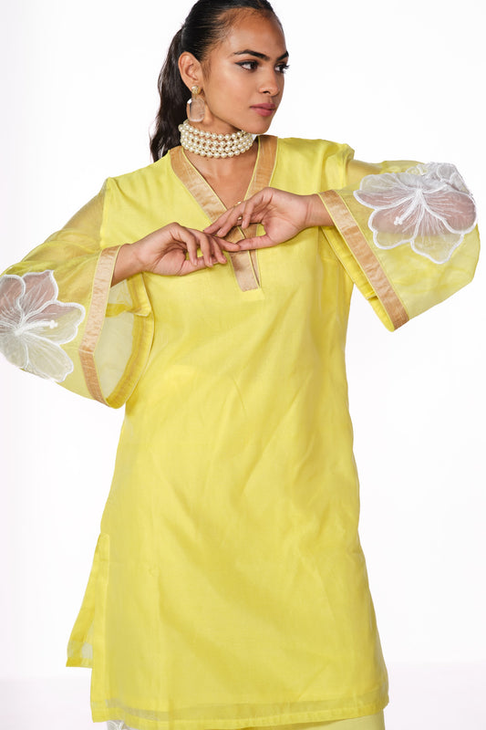 YELLOW-WHITE KARDANA FLOWER KURTA SET
